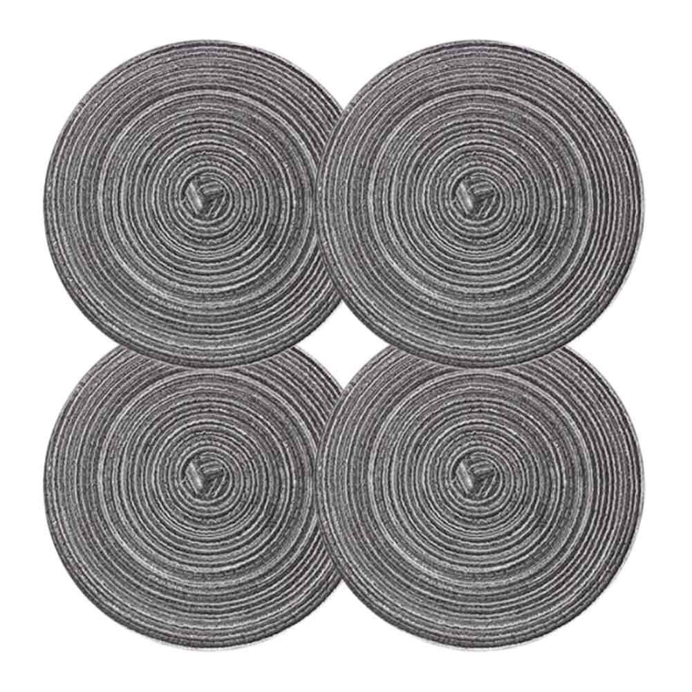 Home > 4 Pcs Tea Time Round Braided Table Mats Dining Kitchen Linen Table Mats Indoor Outdoor Ramie Placemats 7 inch, Grey
