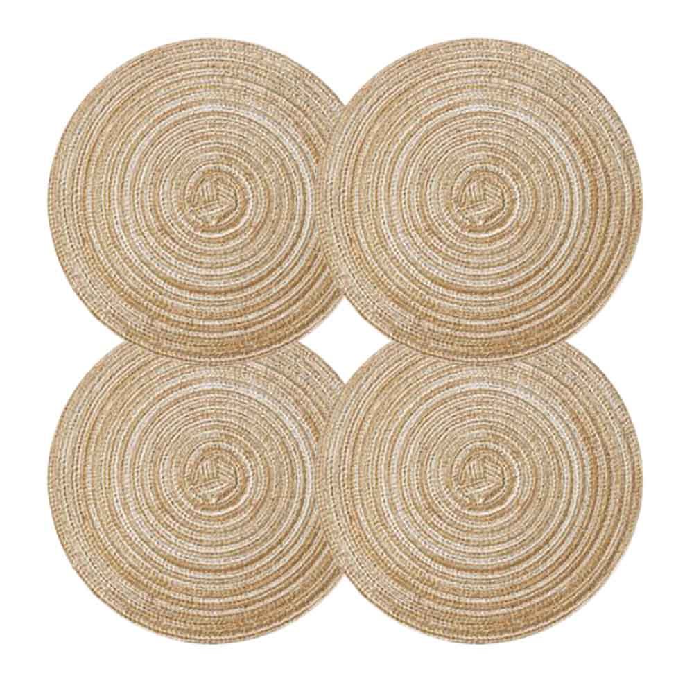 Home > 4 Pcs Woven Ramie Placemats Round Linen Placemat Table Mats Glass Coffee Time Teapot Home Decoration 7 inch, Gold